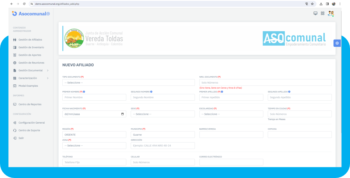 Nuestro software ha sido diseñado específicamente con el propósito de apoyar la gestión de las Juntas de Acciones Comunales y las Juntas Administradoras Locales: buscamos simplificar la gestión de la organización y mejorar la comunicación entre todos sus afiliados. Ya sea que estés coordinando proyectos, compartiendo información importante o simplemente manteniendo a todos al tanto de las novedades, nuestro software te ofrece las herramientas necesarias para hacerlo de manera eficiente y efectiva.